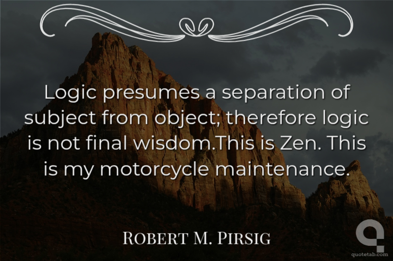 Logic presumes a separation of subject from object; therefore logic is not final wisdom.This is Zen. This is my motorcycle maintenance.
