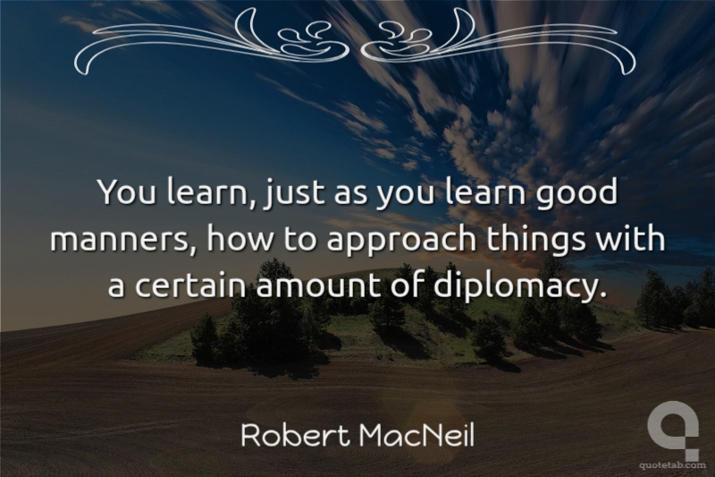 You learn, just as you learn good manners, how to approach things with a certain amount of diplomacy.