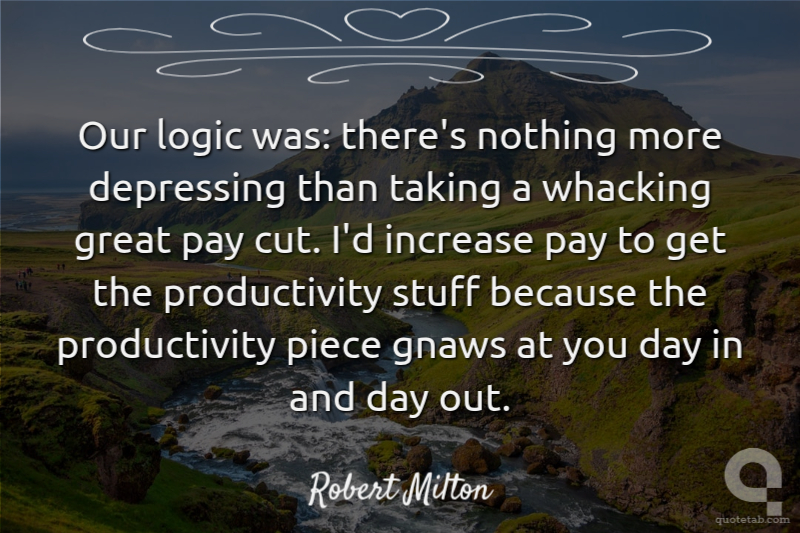 Our logic was: there's nothing more depressing than taking a whacking great pay cut. I'd increase pay to get the productivity stuff because the productivity piece gnaws at you day in and day out.