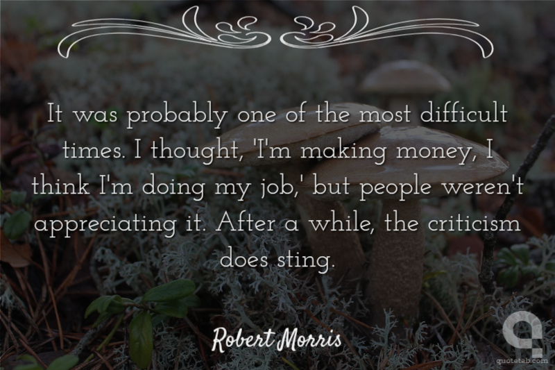 It was probably one of the most difficult times. I thought, 'I'm making money, I think I'm doing my job,' but people weren't appreciating it. After a while, the criticism does sting.