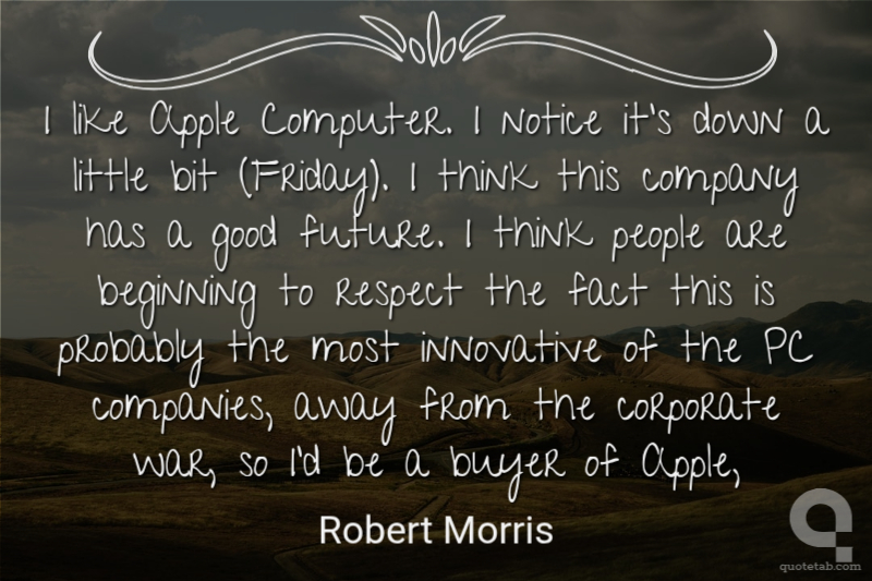 I like Apple Computer. I notice it's down a little bit (Friday). I think this company has a good future. I think people are beginning to respect the fact this is probably the most innovative of the PC companies, away from the corporate war, so I'd be a buyer of Apple,