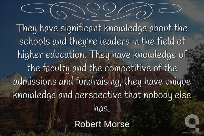 They have significant knowledge about the schools and they're leaders in the field of higher education. They have knowledge of the faculty and the competitive of the admissions and fundraising, they have unique knowledge and perspective that nobody else has.