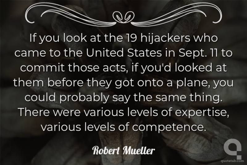 If you look at the 19 hijackers who came to the United States in Sept. 11 to commit those acts, if you'd looked at them before they got onto a plane, you could probably say the same thing. There were various levels of expertise, various levels of competence.