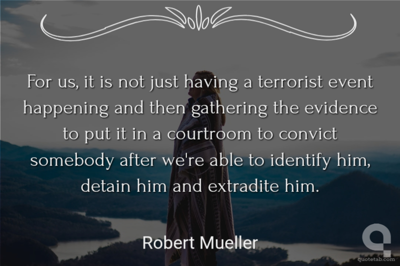 For us, it is not just having a terrorist event happening and then gathering the evidence to put it in a courtroom to convict somebody after we're able to identify him, detain him and extradite him.