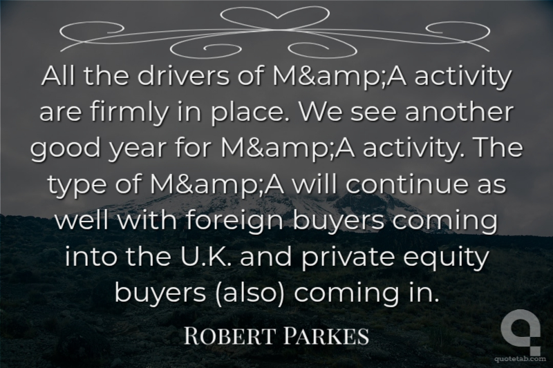 All the drivers of M&A activity are firmly in place. We see another good year for M&A activity. The type of M&A will continue as well with foreign buyers coming into the U.K. and private equity buyers (also) coming in.