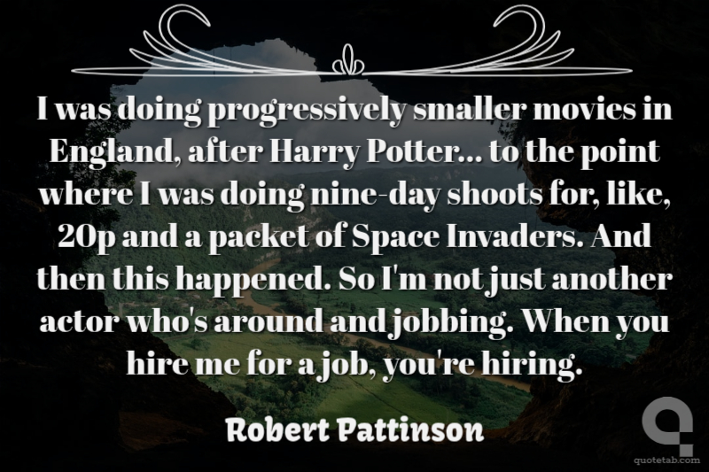 I was doing progressively smaller movies in England, after Harry Potter... to the point where I was doing nine-day shoots for, like, 20p and a packet of Space Invaders. And then this happened. So I'm not just another actor who's around and jobbing. When you hire me for a job, you're hiring.