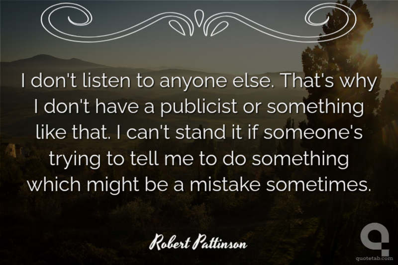 I don't listen to anyone else. That's why I don't have a publicist or something like that. I can't stand it if someone's trying to tell me to do something which might be a mistake sometimes.