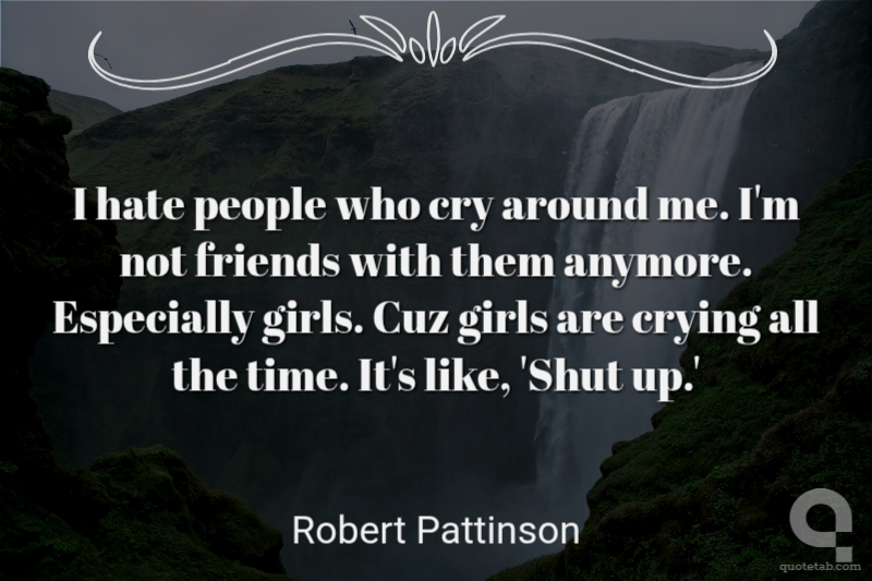I hate people who cry around me. I'm not friends with them anymore. Especially girls. Cuz girls are crying all the time. It's like, 'Shut up.'