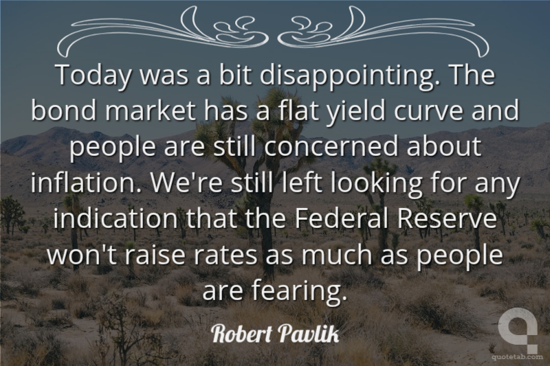 Today was a bit disappointing. The bond market has a flat yield curve and people are still concerned about inflation. We're still left looking for any indication that the Federal Reserve won't raise rates as much as people are fearing.