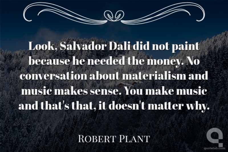Look, Salvador Dali did not paint because he needed the money. No conversation about materialism and music makes sense. You make music and that's that, it doesn't matter why.