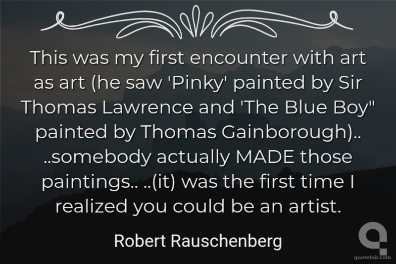 This was my first encounter with art as art (he saw 'Pinky' painted by Sir Thomas Lawrence and 'The Blue Boy" painted by Thomas Gainborough).. ..somebody actually MADE those paintings.. ..(it) was the first time I realized you could be an artist.