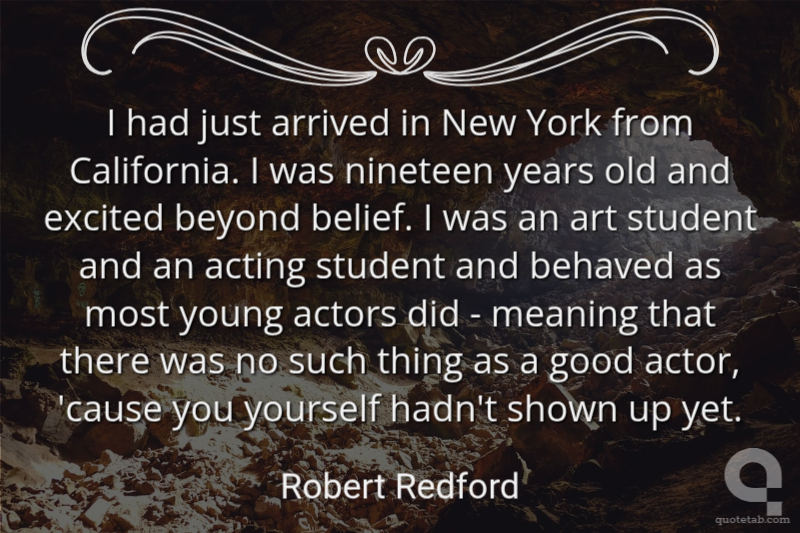 I had just arrived in New York from California. I was nineteen years old and excited beyond belief. I was an art student and an acting student and behaved as most young actors did - meaning that there was no such thing as a good actor, 'cause you yourself hadn't shown up yet.