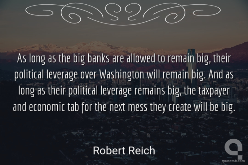 As long as the big banks are allowed to remain big, their political leverage over Washington will remain big. And as long as their political leverage remains big, the taxpayer and economic tab for the next mess they create will be big.