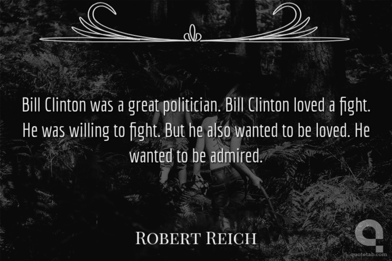 Bill Clinton was a great politician. Bill Clinton loved a fight. He was willing to fight. But he also wanted to be loved. He wanted to be admired.