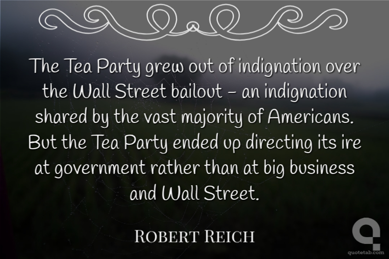 The Tea Party grew out of indignation over the Wall Street bailout - an indignation shared by the vast majority of Americans. But the Tea Party ended up directing its ire at government rather than at big business and Wall Street.