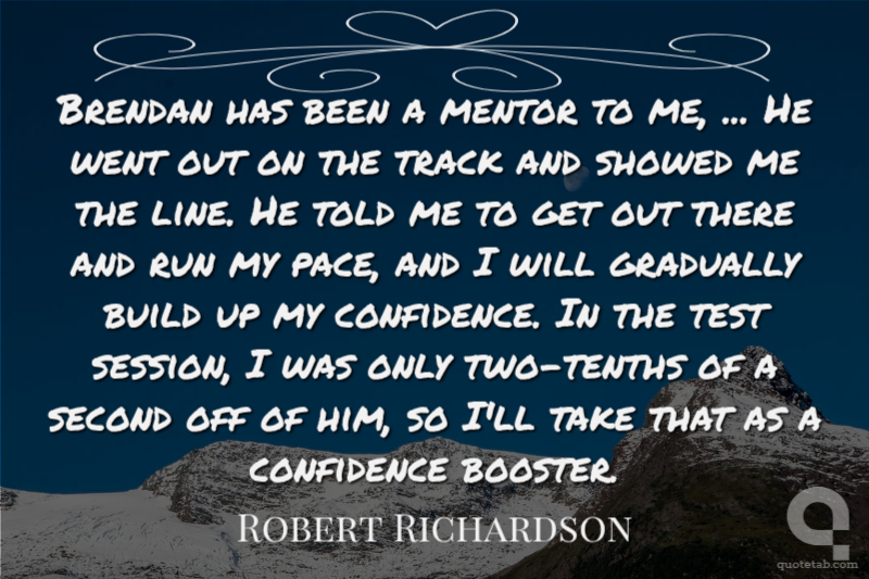 Brendan has been a mentor to me, ... He went out on the track and showed me the line. He told me to get out there and run my pace, and I will gradually build up my confidence. In the test session, I was only two-tenths of a second off of him, so I'll take that as a confidence booster.