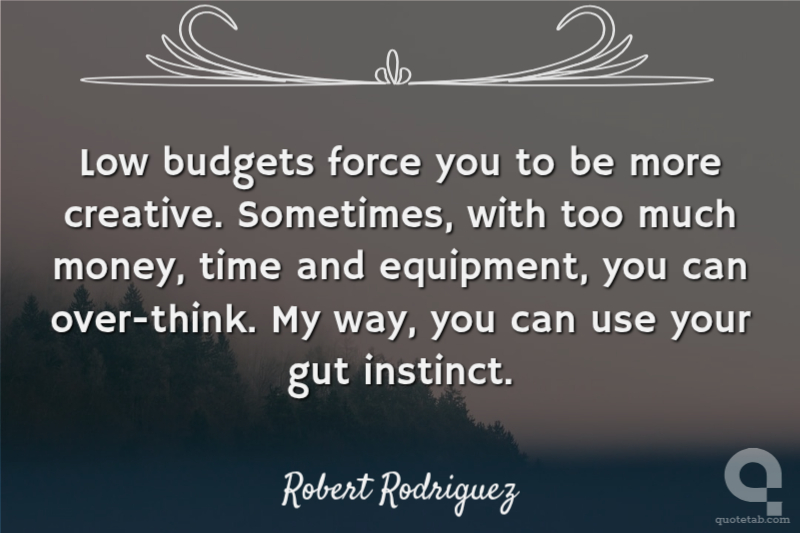 Low budgets force you to be more creative. Sometimes, with too much money, time and equipment, you can over-think. My way, you can use your gut instinct.