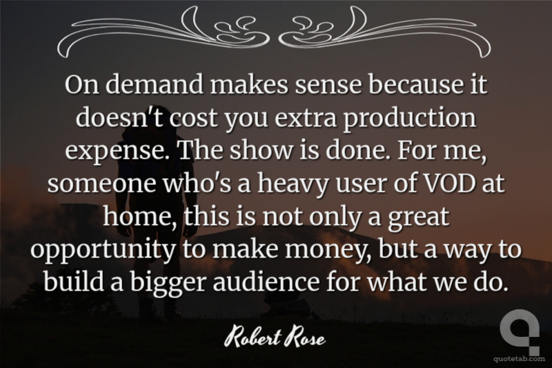 On demand makes sense because it doesn't cost you extra production expense. The show is done. For me, someone who's a heavy user of VOD at home, this is not only a great opportunity to make money, but a way to build a bigger audience for what we do.