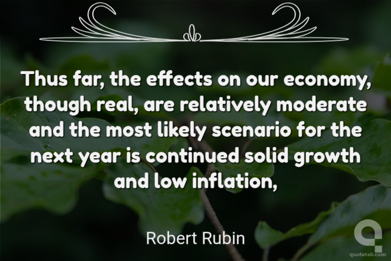 Thus far, the effects on our economy, though real, are relatively moderate and the most likely scenario for the next year is continued solid growth and low inflation,