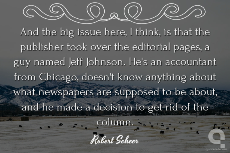 And the big issue here, I think, is that the publisher took over the editorial pages, a guy named Jeff Johnson. He's an accountant from Chicago, doesn't know anything about what newspapers are supposed to be about, and he made a decision to get rid of the column.