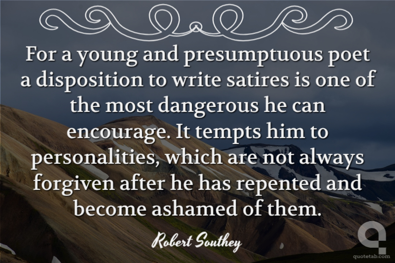 For a young and presumptuous poet a disposition to write satires is one of the most dangerous he can encourage. It tempts him to personalities, which are not always forgiven after he has repented and become ashamed of them.
