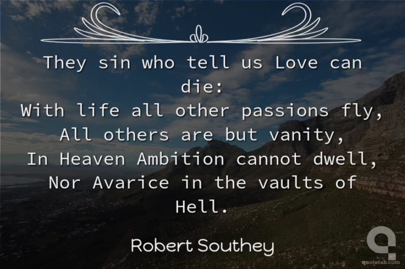 They sin who tell us Love can die: With life all other passions fly, All others are but vanity, In Heaven Ambition cannot dwell, Nor Avarice in the vaults of Hell.