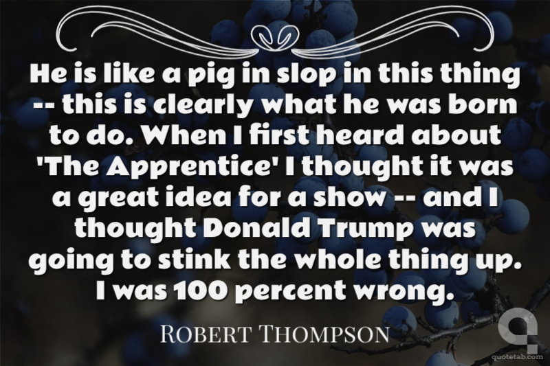 He is like a pig in slop in this thing -- this is clearly what he was born to do. When I first heard about 'The Apprentice' I thought it was a great idea for a show -- and I thought Donald Trump was going to stink the whole thing up. I was 100 percent wrong.