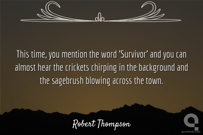 This time, you mention the word 'Survivor' and you can almost hear the crickets chirping in the background and the sagebrush blowing across the town.