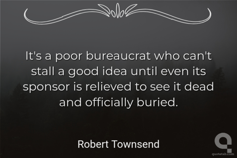 It's a poor bureaucrat who can't stall a good idea until even its sponsor is relieved to see it dead and officially buried.