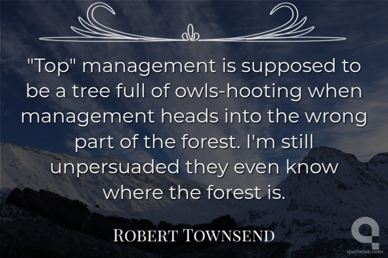 "Top" management is supposed to be a tree full of owls-hooting when management heads into the wrong part of the forest. I'm still unpersuaded they even know where the forest is.