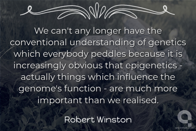 We can't any longer have the conventional understanding of genetics which everybody peddles because it is increasingly obvious that epigenetics - actually things which influence the genome's function - are much more important than we realised.