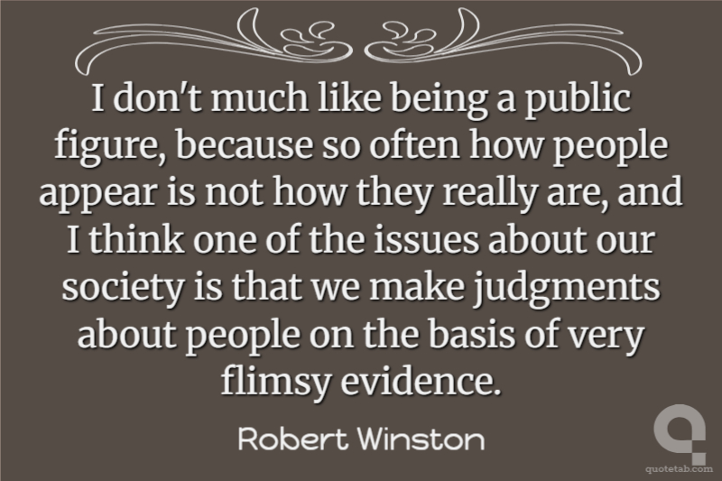 I don't much like being a public figure, because so often how people appear is not how they really are, and I think one of the issues about our society is that we make judgments about people on the basis of very flimsy evidence.