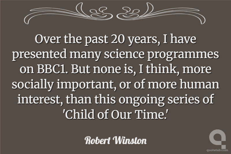 Over the past 20 years, I have presented many science programmes on BBC1. But none is, I think, more socially important, or of more human interest, than this ongoing series of 'Child of Our Time.'