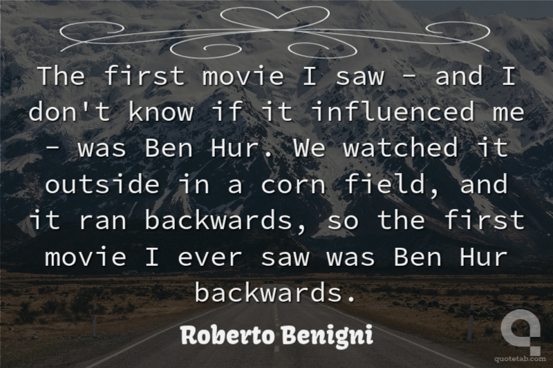 The first movie I saw - and I don't know if it influenced me - was Ben Hur. We watched it outside in a corn field, and it ran backwards, so the first movie I ever saw was Ben Hur backwards.
