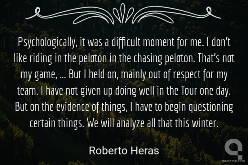 Psychologically, it was a difficult moment for me. I don't like riding in the peloton in the chasing peloton. That's not my game, ... But I held on, mainly out of respect for my team. I have not given up doing well in the Tour one day. But on the evidence of things, I have to begin questioning certain things. We will analyze all that this winter.