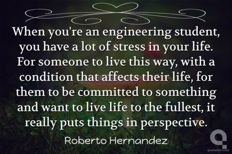 When you're an engineering student, you have a lot of stress in your life. For someone to live this way, with a condition that affects their life, for them to be committed to something and want to live life to the fullest, it really puts things in perspective.