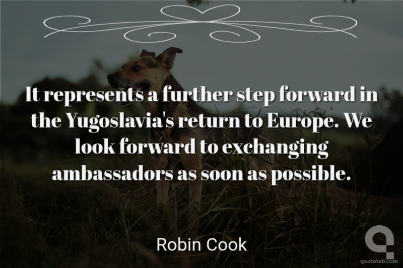 It represents a further step forward in the Yugoslavia's return to Europe. We look forward to exchanging ambassadors as soon as possible.