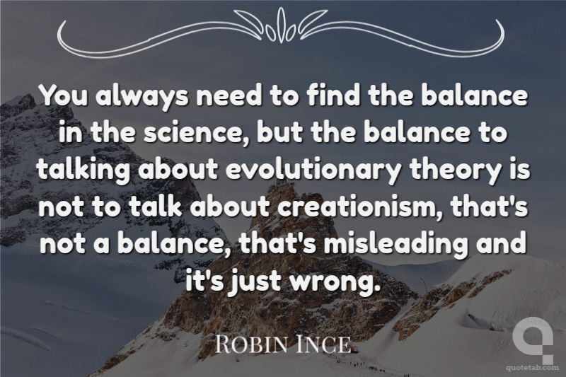 You always need to find the balance in the science, but the balance to talking about evolutionary theory is not to talk about creationism, that's not a balance, that's misleading and it's just wrong.