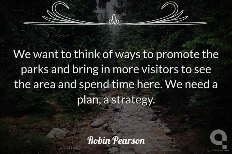 We want to think of ways to promote the parks and bring in more visitors to see the area and spend time here. We need a plan, a strategy.