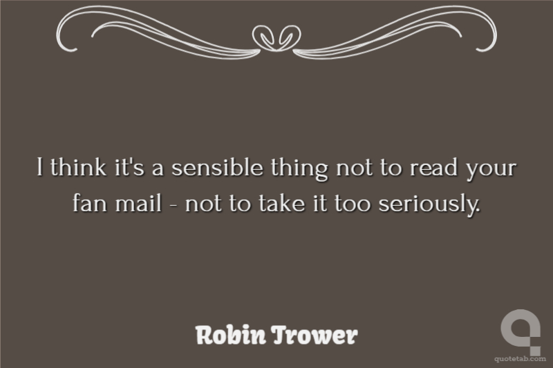 I think it's a sensible thing not to read your fan mail - not to take it too seriously.