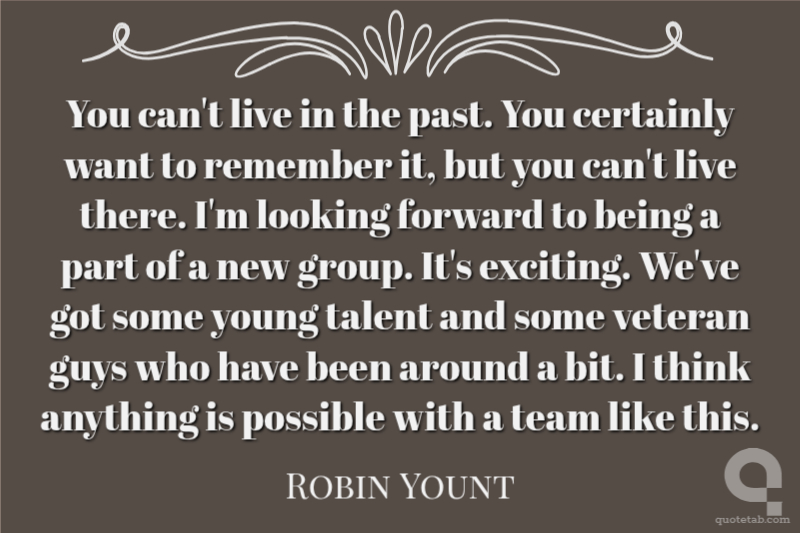 You can't live in the past. You certainly want to remember it, but you can't live there. I'm looking forward to being a part of a new group. It's exciting. We've got some young talent and some veteran guys who have been around a bit. I think anything is possible with a team like this.