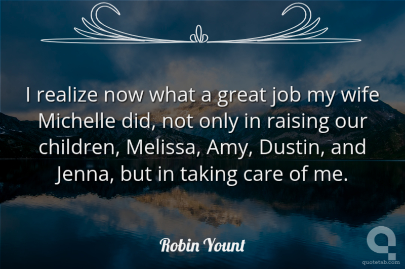 I realize now what a great job my wife Michelle did, not only in raising our children, Melissa, Amy, Dustin, and Jenna, but in taking care of me.