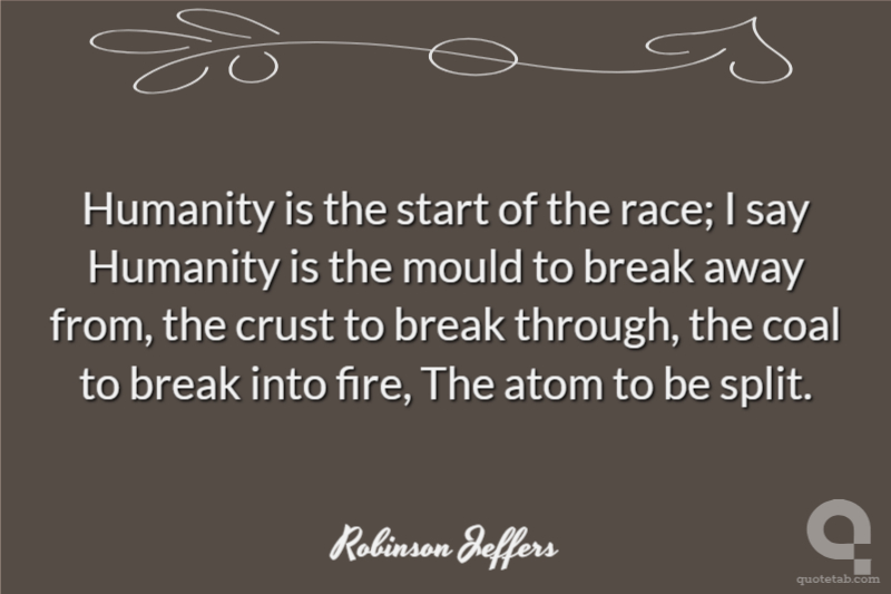 Humanity is the start of the race; I say Humanity is the mould to break away from, the crust to break through, the coal to break into fire, The atom to be split.