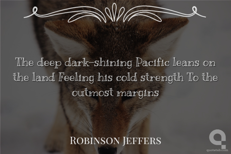 The deep dark-shining Pacific leans on the land Feeling his cold strength To the outmost margins