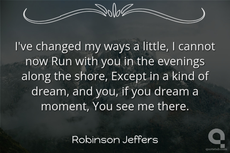I've changed my ways a little, I cannot now Run with you in the evenings along the shore, Except in a kind of dream, and you, if you dream a moment, You see me there.