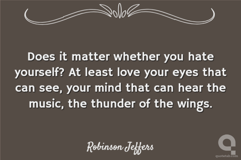 Does it matter whether you hate yourself? At least love your eyes that can see, your mind that can hear the music, the thunder of the wings.