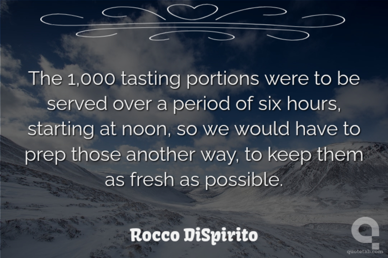 The 1,000 tasting portions were to be served over a period of six hours, starting at noon, so we would have to prep those another way, to keep them as fresh as possible.