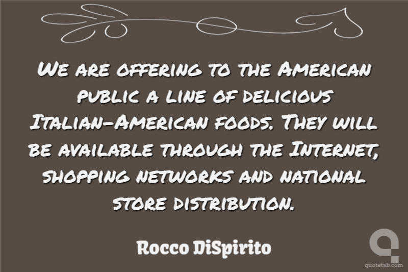 We are offering to the American public a line of delicious Italian-American foods. They will be available through the Internet, shopping networks and national store distribution.