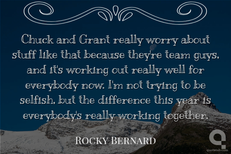 Chuck and Grant really worry about stuff like that because they're team guys, and it's working out really well for everybody now. I'm not trying to be selfish, but the difference this year is everybody's really working together.