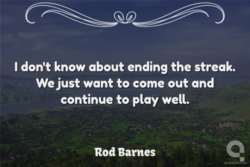 I don't know about ending the streak. We just want to come out and continue to play well.